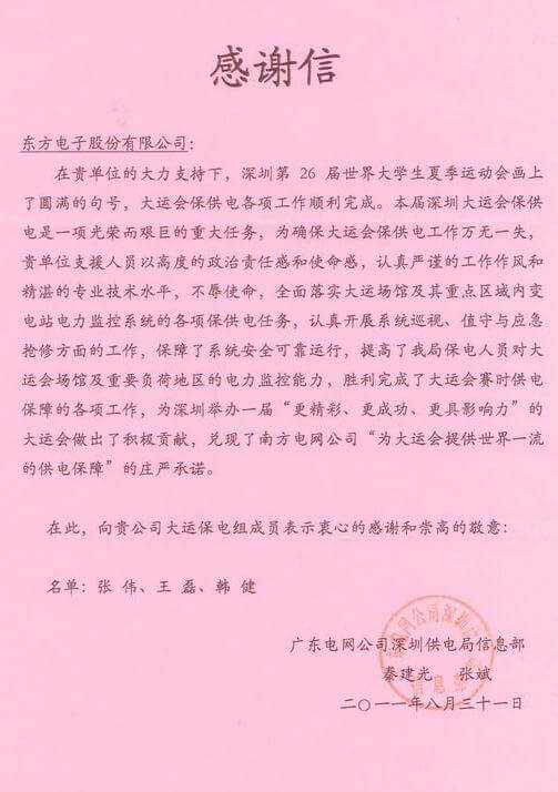 8月23日,世界大学生运动会在深圳圆满落幕,东方电子作为大运会保电企业见证了世界大学生体育运动的蓬勃发展。东方电子技术中心系统部与工程部坚守“忠于职守,全力以赴,誓保大运电网安全”的信念,联手实现了大运保供电期间系统零故障、零缺陷的目标。