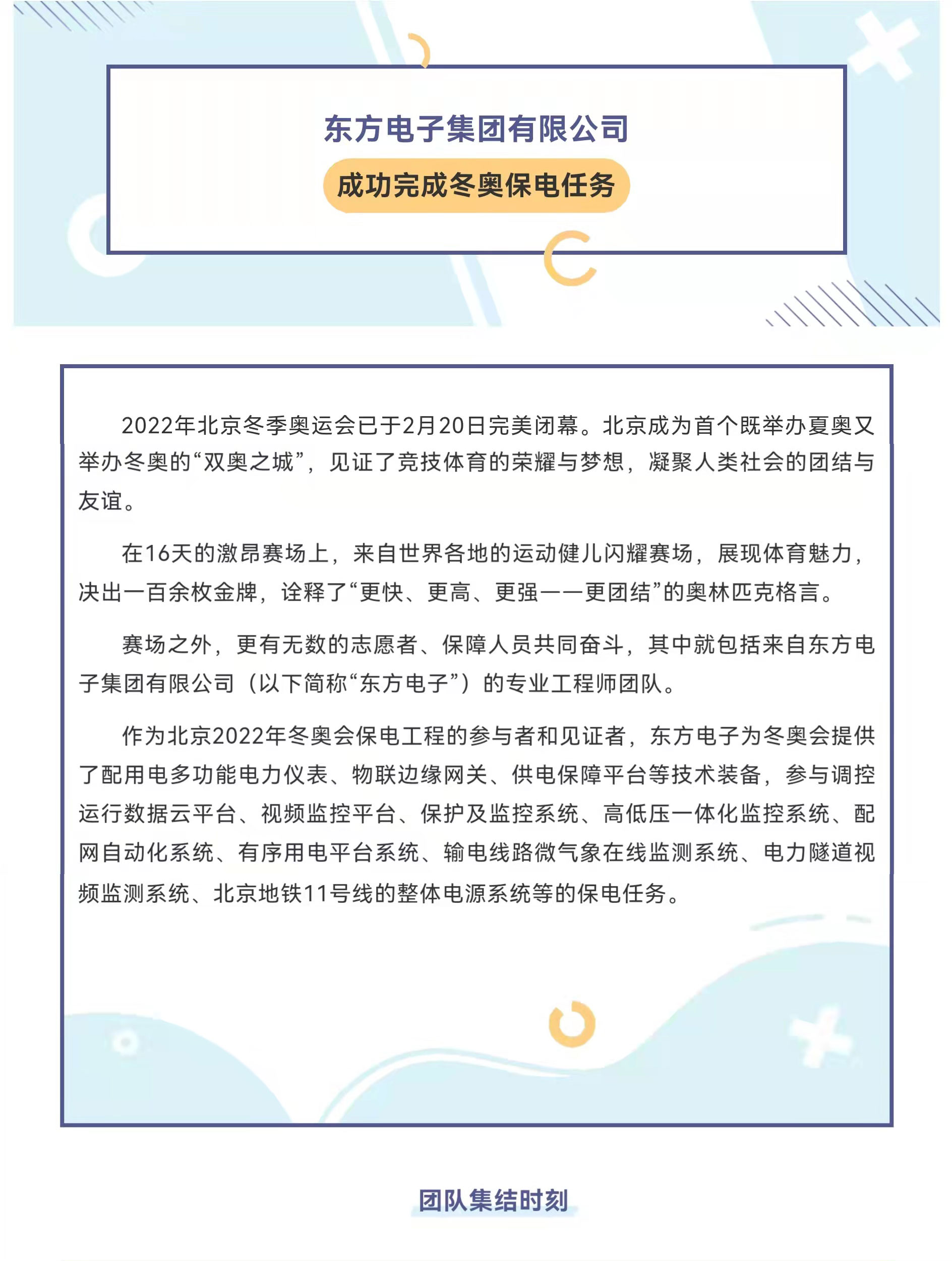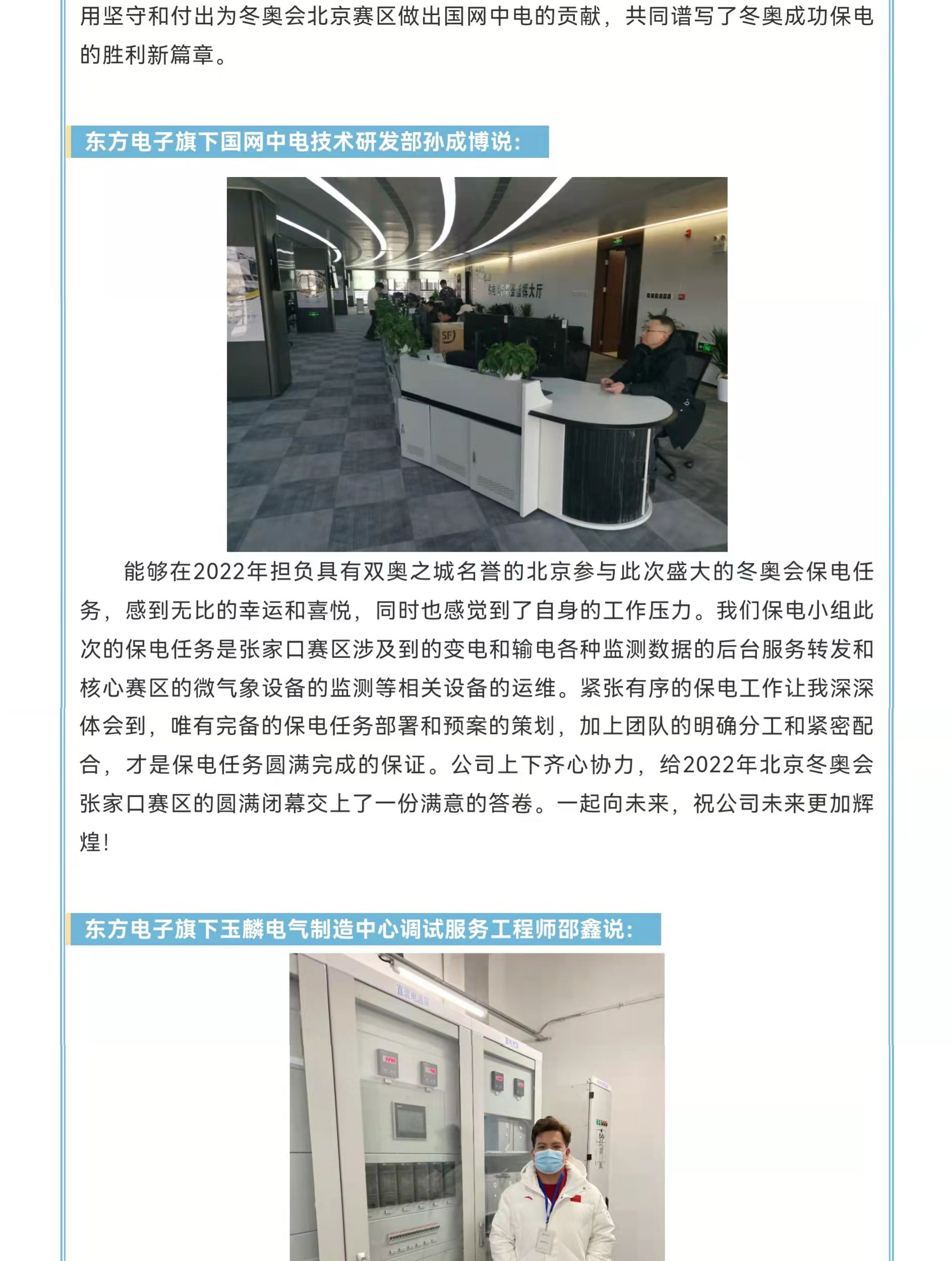 东方电子成功完成冬奥保电任务