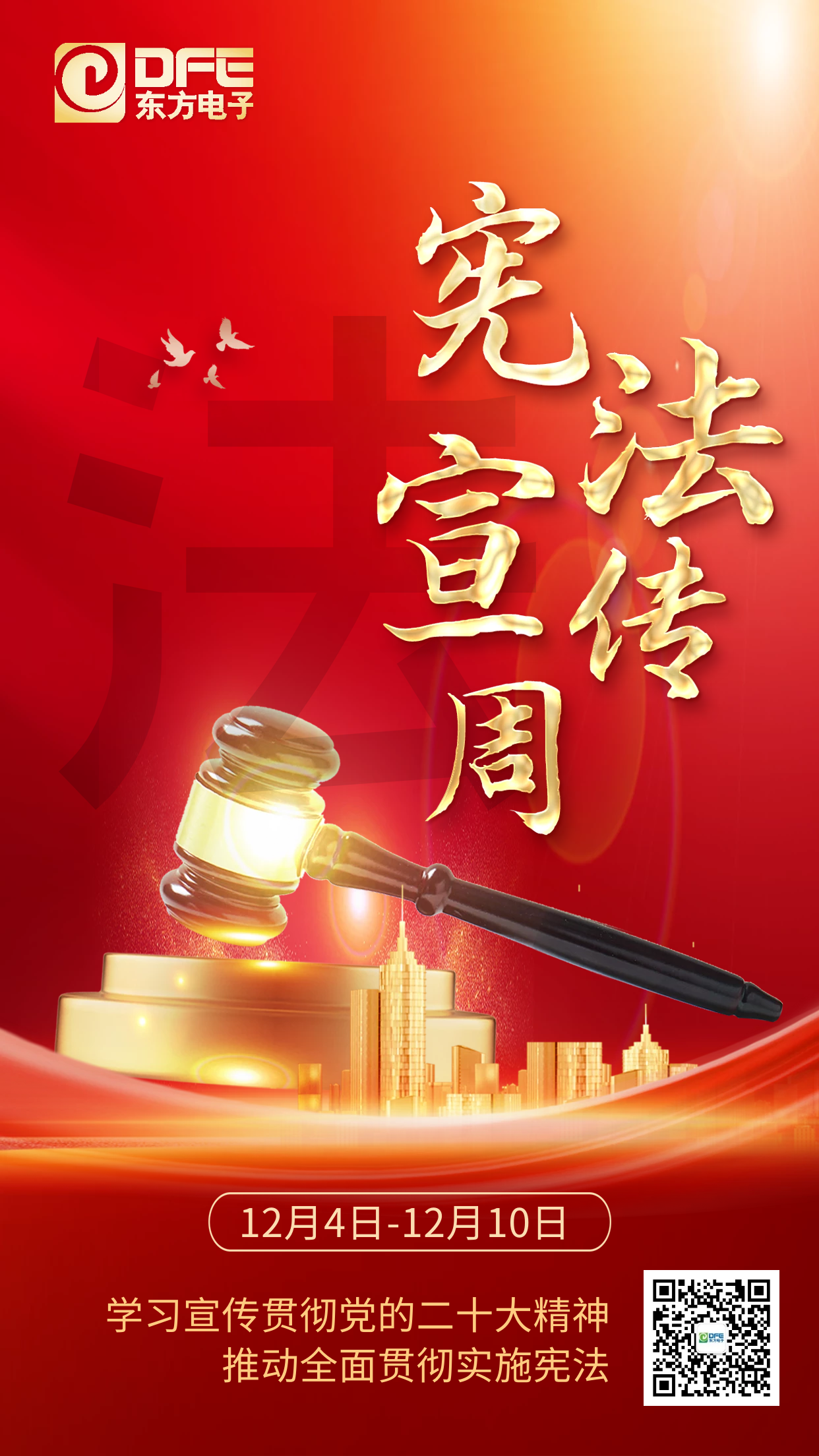 2022年12月4日是第九个“国家宪法日”,也是中国现行宪法公布施行四十周年。12月4日至10日是第五个“宪法宣传周”。宣传周活动的主题是“学习宣传贯彻党的二十大精神,推动全面贯彻实施宪法”。