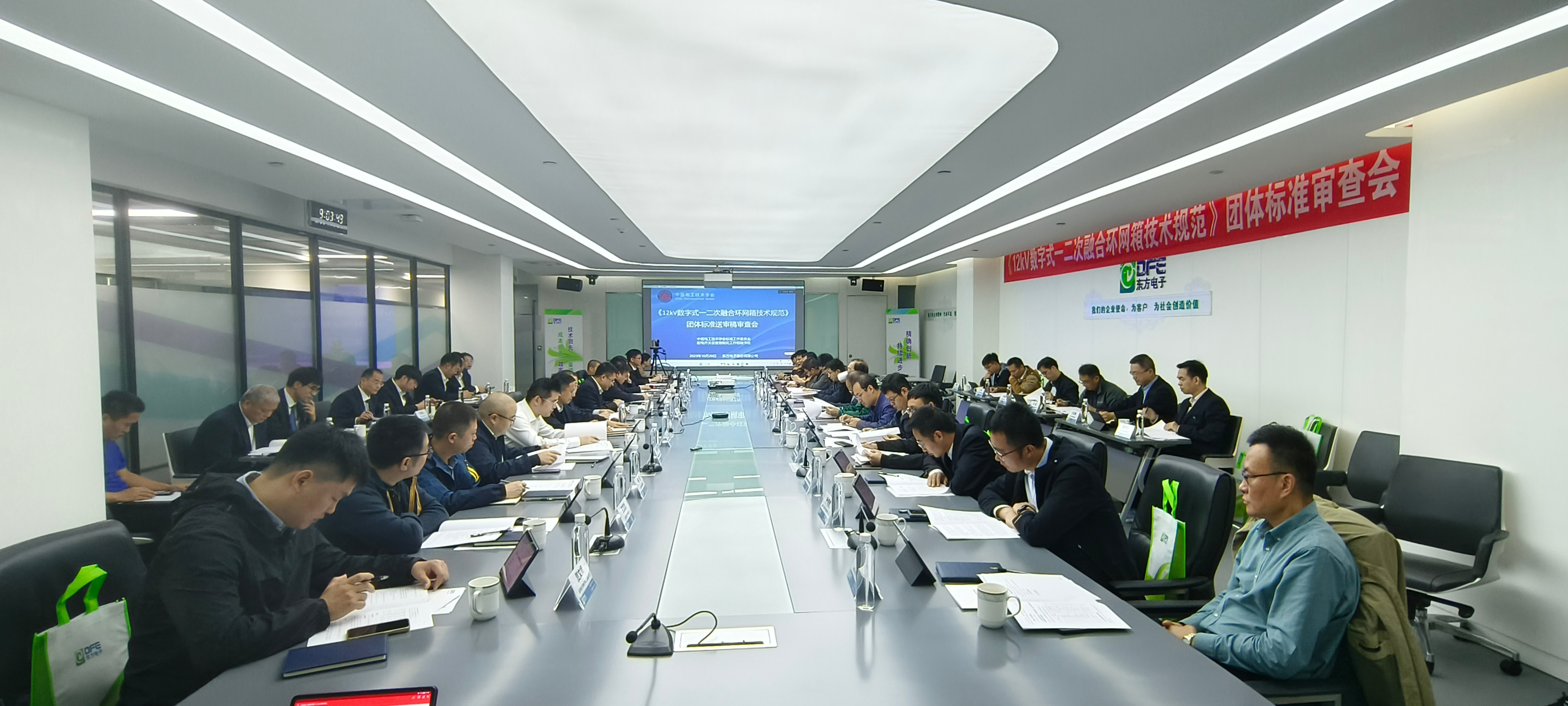 会议由中国电工技术学会配电开关设备智能化标工组秘书长沈兵兵主持。九游娱乐(中国)官方网站智能配电事业部总工程师王高海代表主要起草单位向专家组进行编写情况汇报。与会专家对《12kV数字式一二次融合环网箱技术规范》团体标准的专用术语、技术要求、设计与结构以及试验检测等方面进行了专业、细致的讨论交流。最后由评审专家投票表决,全票通过了《12kV数字式一二次融合环网箱技术规范》送审稿审查。