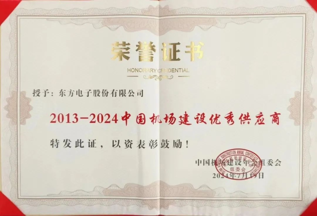 东方电子在年会上做了题为“民航机场智慧能源及供配电(110kV及以下)九游娱乐(中国)官方网站”的主题发言,携机场供配电方案及案例亮相“第十届中国机场建设优秀成果展”暨中国机场建设设计及设施设备应用展,并在“中国机场建设年会”十周年庆典上,荣获“2013-2024中国机场建设优秀供应商”的殊荣。