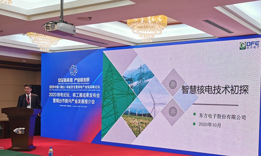 10月16日上午,在2020核电论坛、核工展成果发布会暨烟台市新兴产业发展推介会上,股份公司副总工程师戴宏伟博士代表东方电子就“智慧核电技术初探”主题发言,详细介绍了我公司中低压电气成套设备智能化、智能巡检机器人、综合能源管理、网络安全监测等方面针对核电产业所做的技术创新,并结合现场案例就智慧核电的应用场景进行了分享。